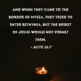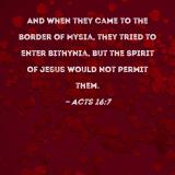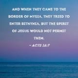 And when they came to the border of Mysia, they tried to enter Bithynia, but the Spirit of Jesus would not permit them.