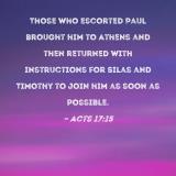 Those who escorted Paul brought him to Athens and then returned with instructions for Silas and Timothy to join him as soon as possible.