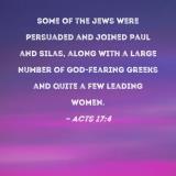 Some of the Jews were persuaded and joined Paul and Silas, along with a large number of God-fearing Greeks and quite a few leading women.