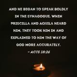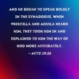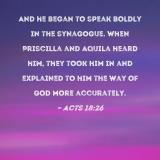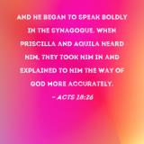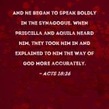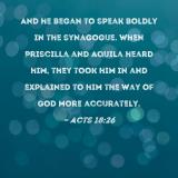 And he began to speak boldly in the synagogue. When Priscilla and Aquila heard him, they took him in and explained to him the way of God more accurately.