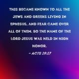 This became known to all the Jews and Greeks living in Ephesus, and fear came over all of them. So the name of the Lord Jesus was held in high honor.
