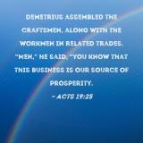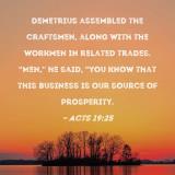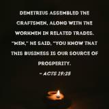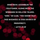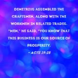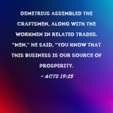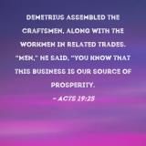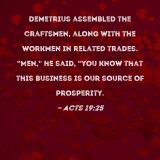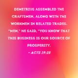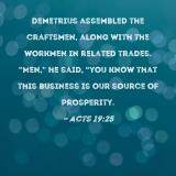 Demetrius assembled the craftsmen, along with the workmen in related trades. "Men," he said, "you know that this business is our source of prosperity.