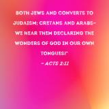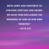 both Jews and converts to Judaism; Cretans and Arabs--we hear them declaring the wonders of God in our own tongues!"