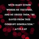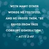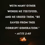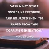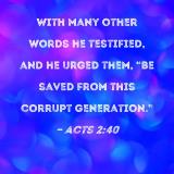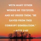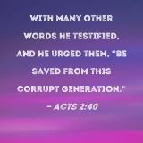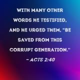 With many other words he testified, and he urged them, "Be saved from this corrupt generation."
