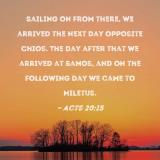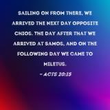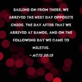 Sailing on from there, we arrived the next day opposite Chios. The day after that we arrived at Samos, and on the following day we came to Miletus.