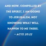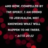 And now, compelled by the Spirit, I am going to Jerusalem, not knowing what will happen to me there.