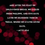 And after the Feast of Unleavened Bread, we sailed from Philippi, and five days later we rejoined them in Troas, where we stayed seven days.