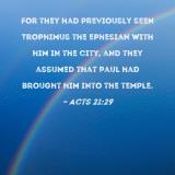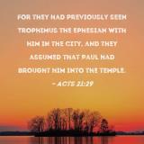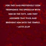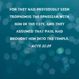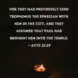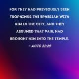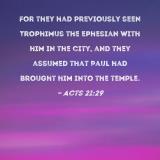 For they had previously seen Trophimus the Ephesian with him in the city, and they assumed that Paul had brought him into the temple.