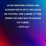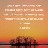After sighting Cyprus and passing south of it, we sailed on to Syria and landed at Tyre, where the ship was to unload its cargo.