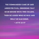 The commander came up and arrested Paul, ordering that he be bound with two chains. Then he asked who he was and what he had done.