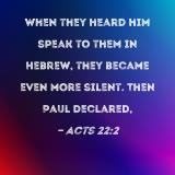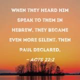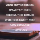When they heard him speak to them in Hebrew, they became even more silent. Then Paul declared,