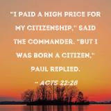 "I paid a high price for my citizenship," said the commander. "But I was born a citizen," Paul replied.