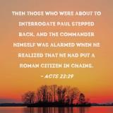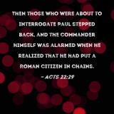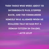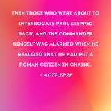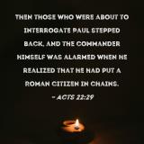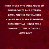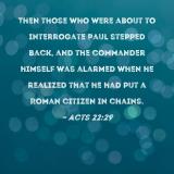 Then those who were about to interrogate Paul stepped back, and the commander himself was alarmed when he realized that he had put a Roman citizen in chains.