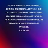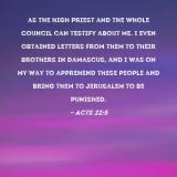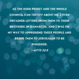 as the high priest and the whole Council can testify about me. I even obtained letters from them to their brothers in Damascus, and I was on my way to apprehend these people and bring them to Jerusalem to be punished.