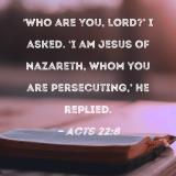 Who are You, Lord?' I asked. 'I am Jesus of Nazareth, whom you are persecuting,' He replied.