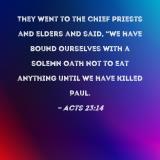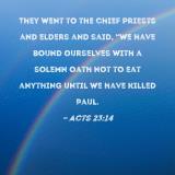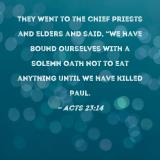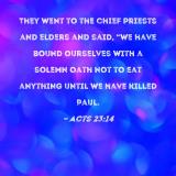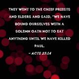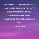 They went to the chief priests and elders and said, "We have bound ourselves with a solemn oath not to eat anything until we have killed Paul.