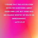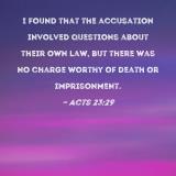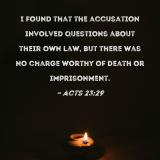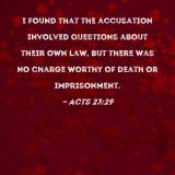 I found that the accusation involved questions about their own law, but there was no charge worthy of death or imprisonment.