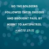 So the soldiers followed their orders and brought Paul by night to Antipatris.