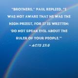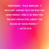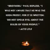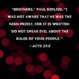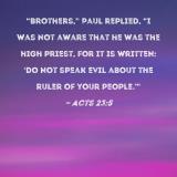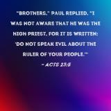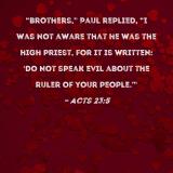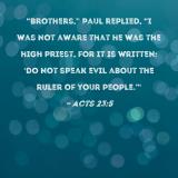 "Brothers," Paul replied, "I was not aware that he was the high priest, for it is written: 'Do not speak evil about the ruler of your people.'"