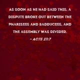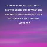 As soon as he had said this, a dispute broke out between the Pharisees and Sadducees, and the assembly was divided.