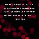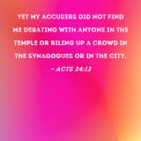 Yet my accusers did not find me debating with anyone in the temple or riling up a crowd in the synagogues or in the city.