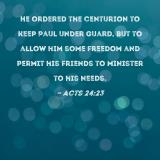 He ordered the centurion to keep Paul under guard, but to allow him some freedom and permit his friends to minister to his needs.