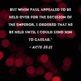 But when Paul appealed to be held over for the decision of the Emperor, I ordered that he be held until I could send him to Caesar."