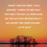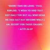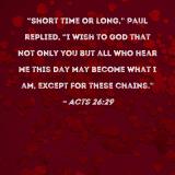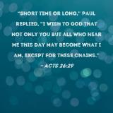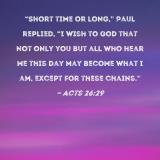 "Short time or long," Paul replied, "I wish to God that not only you but all who hear me this day may become what I am, except for these chains."