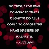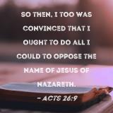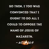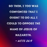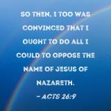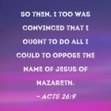 So then, I too was convinced that I ought to do all I could to oppose the name of Jesus of Nazareth.