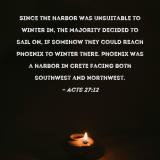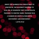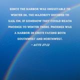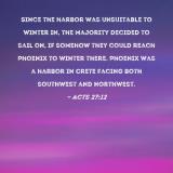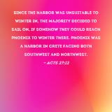 Since the harbor was unsuitable to winter in, the majority decided to sail on, if somehow they could reach Phoenix to winter there. Phoenix was a harbor in Crete facing both southwest and northwest.