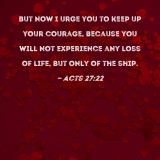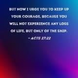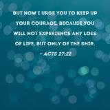 But now I urge you to keep up your courage, because you will not experience any loss of life, but only of the ship.