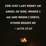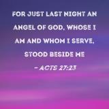 For just last night an angel of God, whose I am and whom I serve, stood beside me