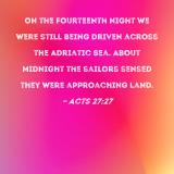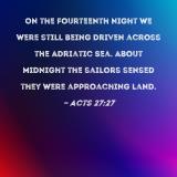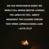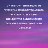 On the fourteenth night we were still being driven across the Adriatic Sea. About midnight the sailors sensed they were approaching land.
