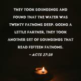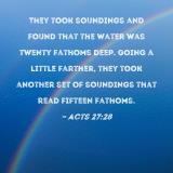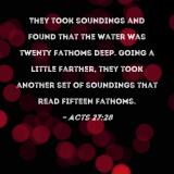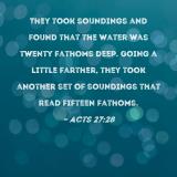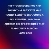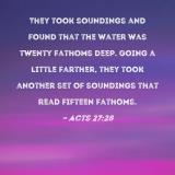They took soundings and found that the water was twenty fathoms deep. Going a little farther, they took another set of soundings that read fifteen fathoms.