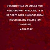 Fearing that we would run aground on the rocks, they dropped four anchors from the stern and prayed for daybreak.