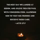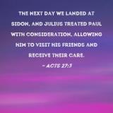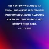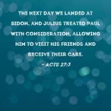 The next day we landed at Sidon, and Julius treated Paul with consideration, allowing him to visit his friends and receive their care.