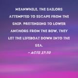 Meanwhile, the sailors attempted to escape from the ship. Pretending to lower anchors from the bow, they let the lifeboat down into the sea.