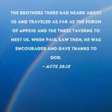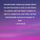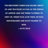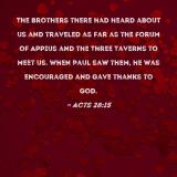 The brothers there had heard about us and traveled as far as the Forum of Appius and the Three Taverns to meet us. When Paul saw them, he was encouraged and gave thanks to God.