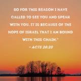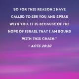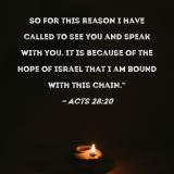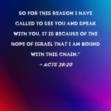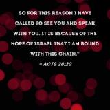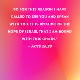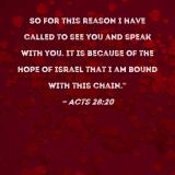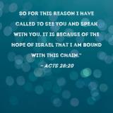 So for this reason I have called to see you and speak with you. It is because of the hope of Israel that I am bound with this chain."