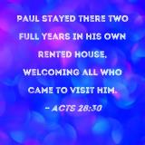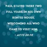Paul stayed there two full years in his own rented house, welcoming all who came to visit him.