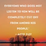 Everyone who does not listen to Him will be completely cut off from among his people.'