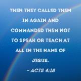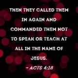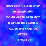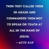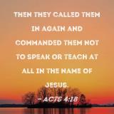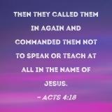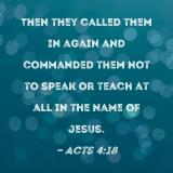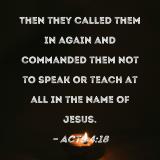 Then they called them in again and commanded them not to speak or teach at all in the name of Jesus.