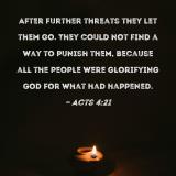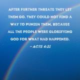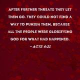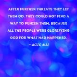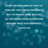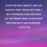 After further threats they let them go. They could not find a way to punish them, because all the people were glorifying God for what had happened.
