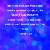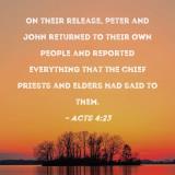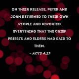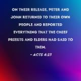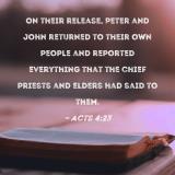 On their release, Peter and John returned to their own people and reported everything that the chief priests and elders had said to them.