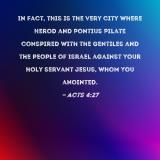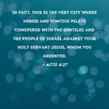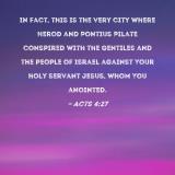 In fact, this is the very city where Herod and Pontius Pilate conspired with the Gentiles and the people of Israel against Your holy servant Jesus, whom You anointed.