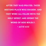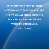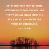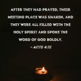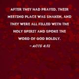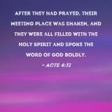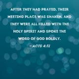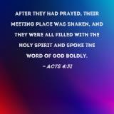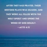 After they had prayed, their meeting place was shaken, and they were all filled with the Holy Spirit and spoke the word of God boldly.