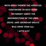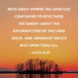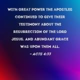With great power the apostles continued to give their testimony about the resurrection of the Lord Jesus. And abundant grace was upon them all.