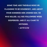 Some time ago Theudas rose up, claiming to be somebody, and about four hundred men joined him. He was killed, all his followers were dispersed, and it all came to nothing.