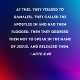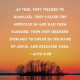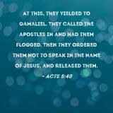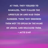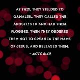 At this, they yielded to Gamaliel. They called the apostles in and had them flogged. Then they ordered them not to speak in the name of Jesus, and released them.