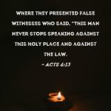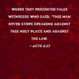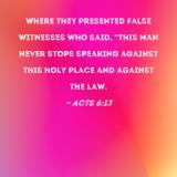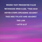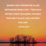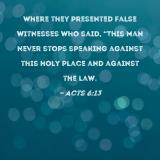 where they presented false witnesses who said, "This man never stops speaking against this holy place and against the law.